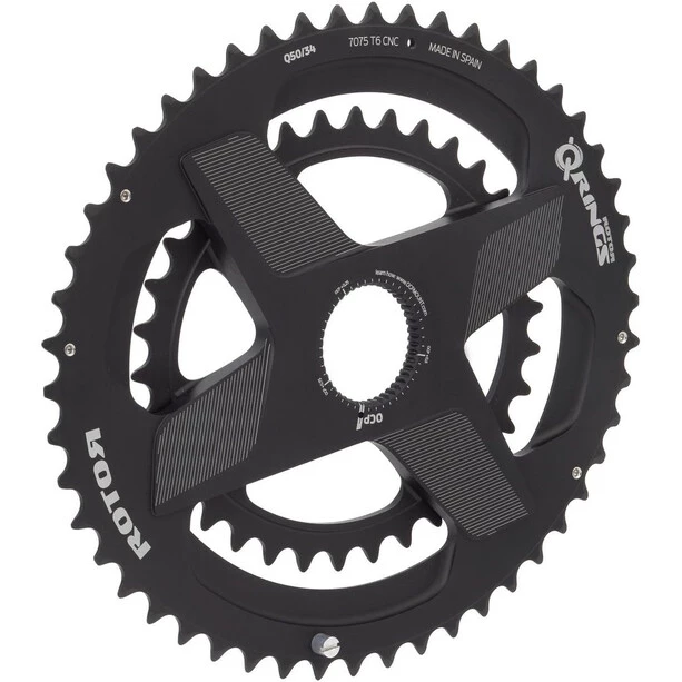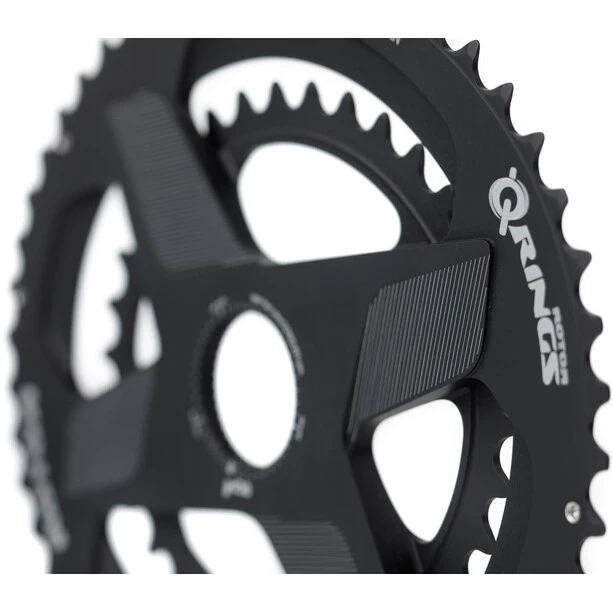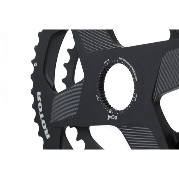 La paire de plateaux ROTOR Q-Rings Direct Mount est conçue pour les cyclistes habitués des plateaux ovales, qui impliquent une technique de pédalage particulière. Ces plateaux conviennent aussi à n’importe quel pratiquant souhaitant améliorer son geste de pédalage. Grâce à leur forme ovale spéciale, ils permettent de réduire l’effet de point mort quand les manivelles sont à la perpendiculaire. La transmission de puissance est aussi améliorée quand les manivelles se trouvent parallèles à la route, dans leur position la plus favorable à la poussée du cycliste. Cette paire de plateau ROTOR Q-Rings a l’avantage d’un montage direct, qui fait l’économie d’une étoile et des éléments de visserie. Le poids est ainsi réduit, le montage facilité, sans que la durabilité matérielle ne soit affectée. Ces plateaux sont conçus dans un aluminium 7075-T6 traité thermiquement et très soigneusement usiné CNC. Enfin, on précise que ces plateaux ROTOR reprennent la technologie OCP (Optimum Chainring Position), qui permet au cycliste de régler très finement – par crans d’un dégré – leur position, pour l’ajuster au mieux à son geste de pédalage particulier et à son propore ressenti.